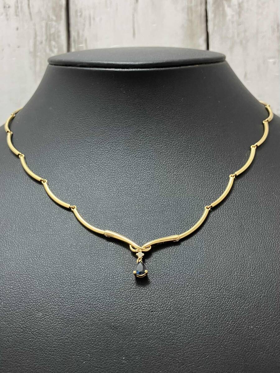 > K18 天然ブルーサファイア0.42ct ダイヤ0.03ct 8.3g 38cm ネックレス 鑑別書付き 店舗受取可