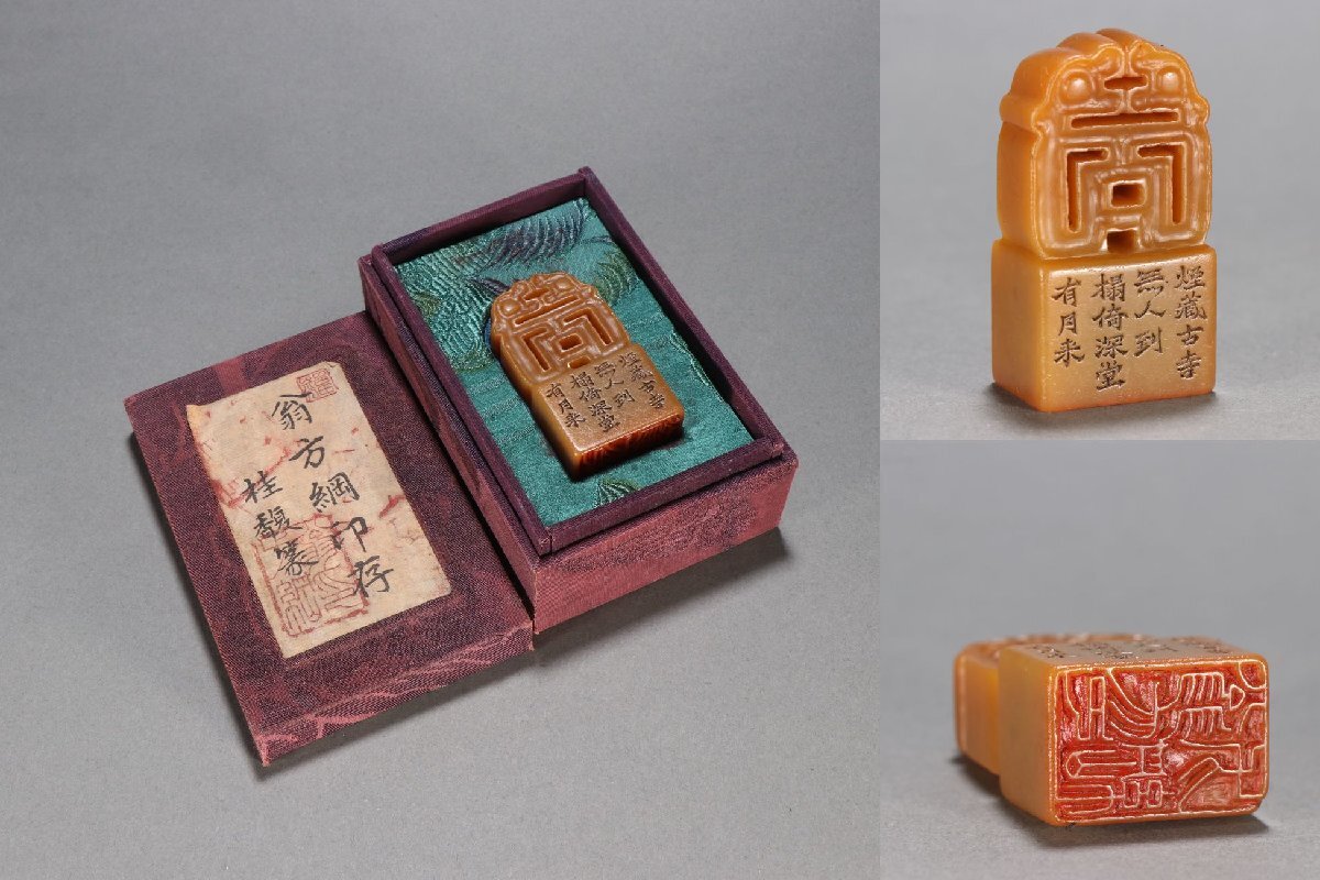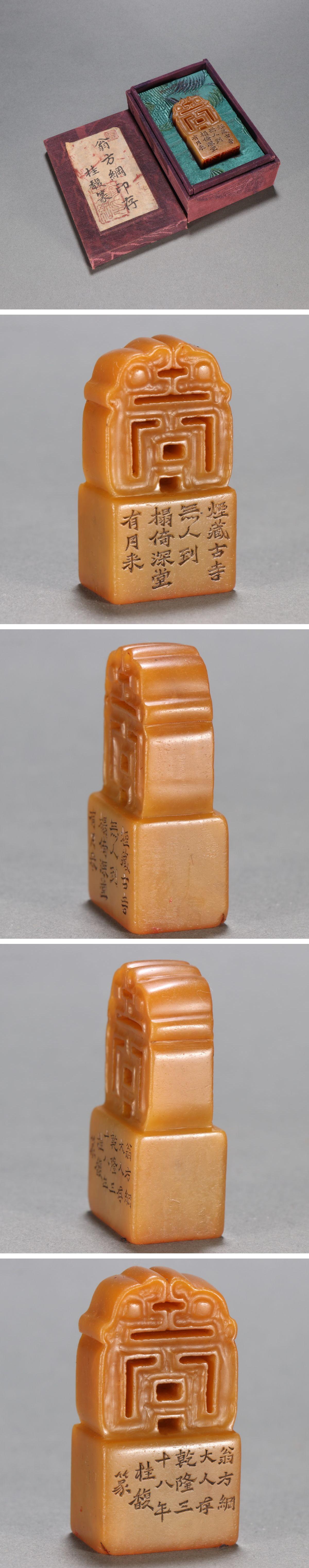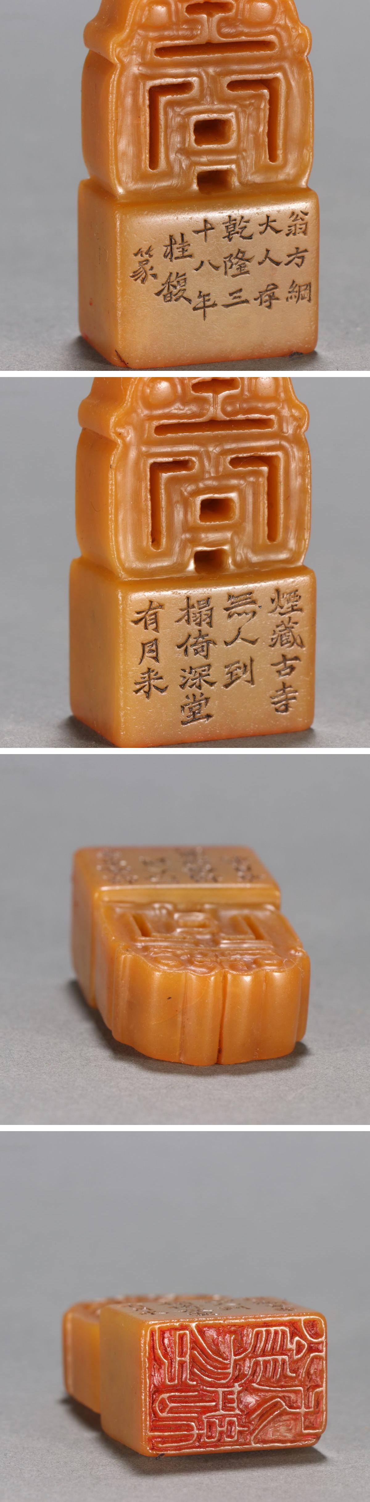 > 【清】某有名オークション購入 清時代 乾隆三十八年在銘 寿山田黄石印章 材質保証 古置物 古擺件 古美術 時代コレクション7L10-HA8