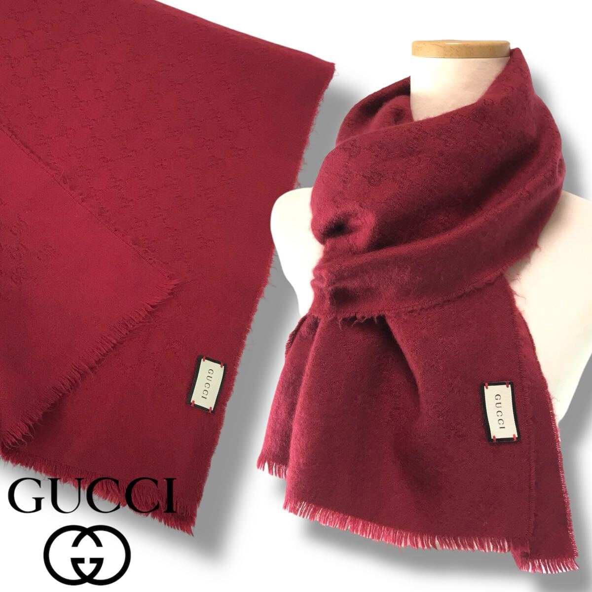 > d239 GUCCI グッチ GG柄 マフラー ロング ストール ルージュレッド メンズ レディース 正規品