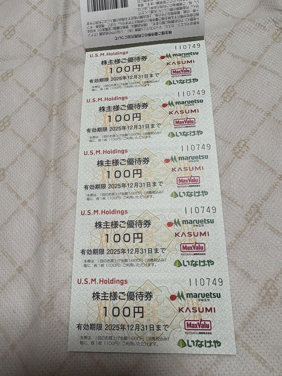 - U.S.M.Holdings株主様ご優待券、2000円分、新品、マルエツ、カスミ
