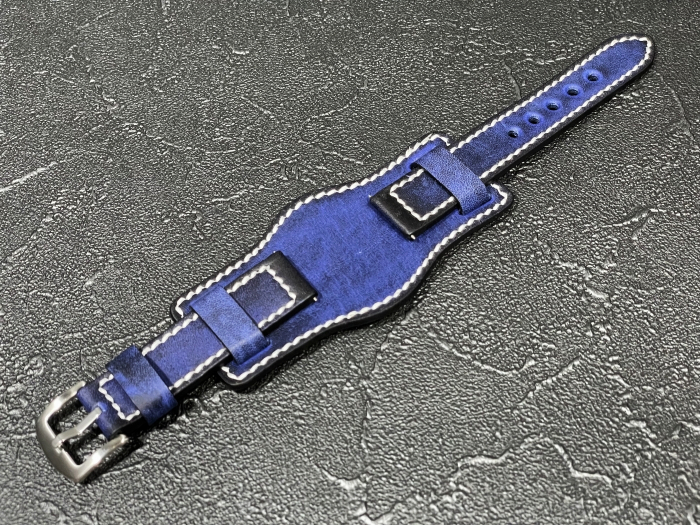 - ラグ幅20mm 腕時計ベルト マット ブンド付き レザーベルト 本革 ブルー 時計用バンド BDR
