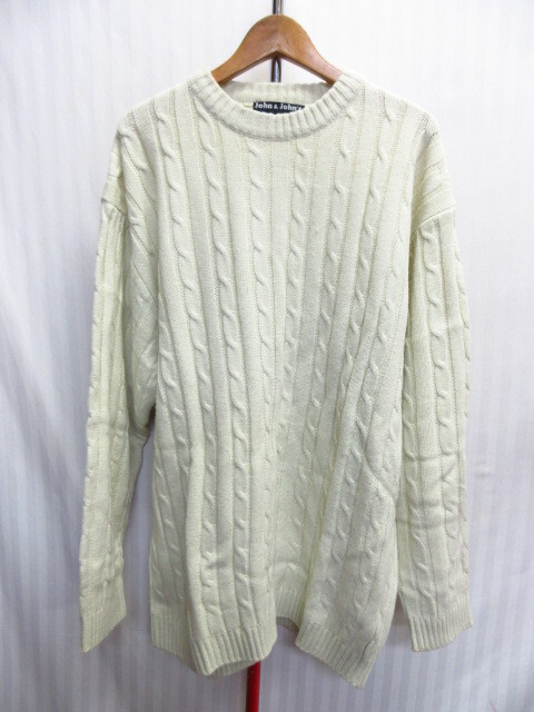 - USA製 JOHN&JOHN'S 90sヴィンテージ ケーブルニットセーター メンズXXL アイボリー系 ウールセーター ウールトレーナー 3Dニット 10222