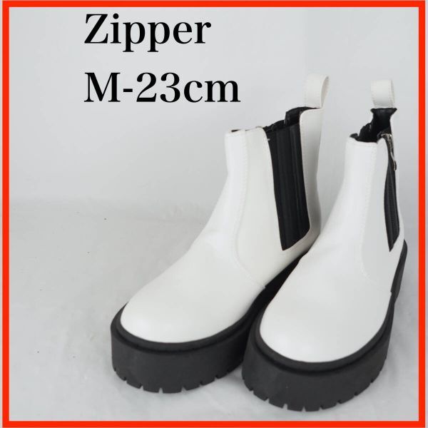 - EB9602★美品★Zipper*ジッパー*レディースショートブーツ*M-23cm*白