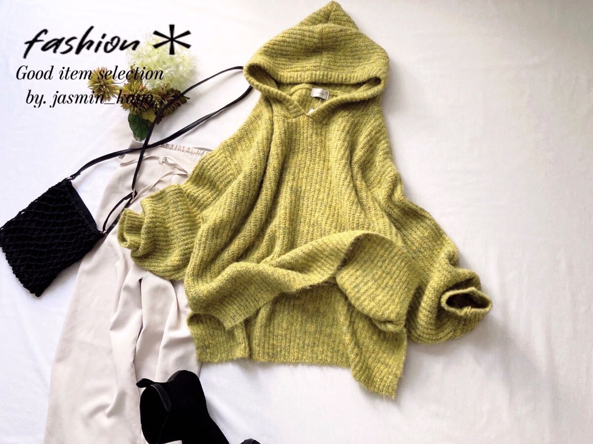 - ◆新品LL~3L/ゆったり着たいL(記載L◆ゆとりライン*ふわもち柔らかライトグリーン×イエローMIXカラーフード付ゆったりルーズニット