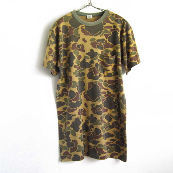 - 80's/Duxbak/迷彩/ポケットTシャツ【L】半袖/ダックスバック/ポケT/片ポケ/カットソー/ビンテージ/D111-01-0003W