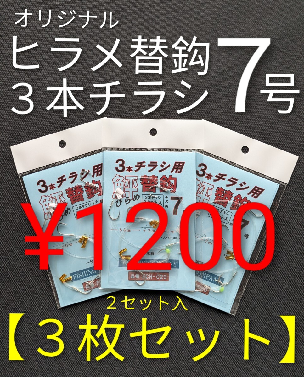 - ヒラメ3本チラシ替鈎 2セット入【3枚】チヌ鈎(白)7号 ハリスフロロ7号 94cm 送料無料匿名配送 フィッシングカンパニー fishing No.1