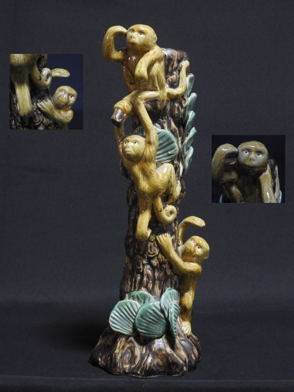 - 木登り猿 三猿 陶器製 置物 飾 / 九谷焼? 【送料無料】