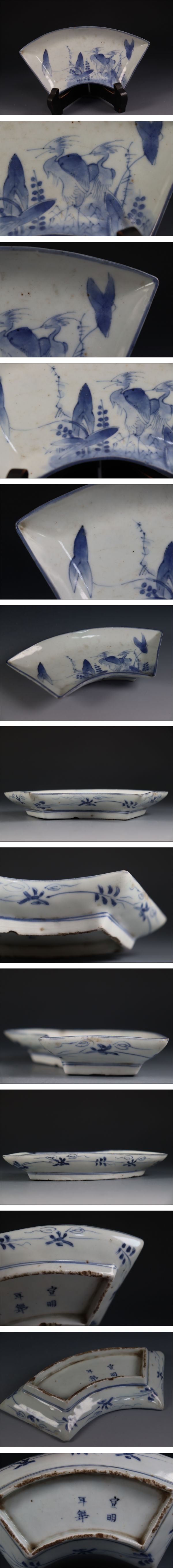 - 蔵出し品 藍九谷 江戸期 宣明年製 扇皿