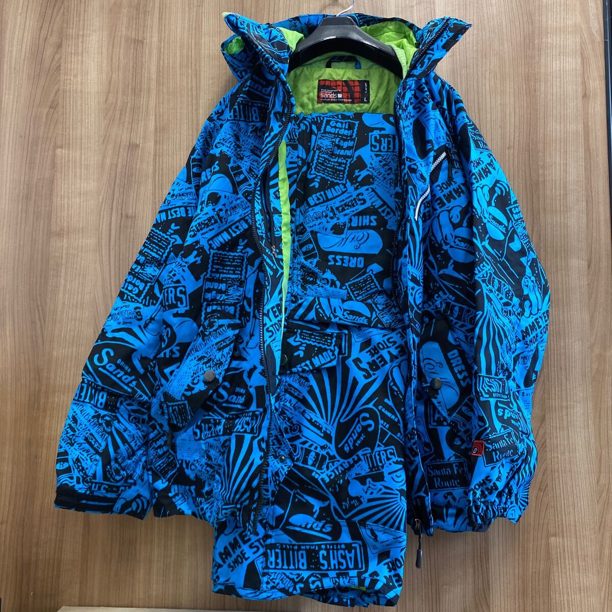 > 【中古保管品】超美品 Sands スノーボード スノーボードウェア 上下セット Lサイズ メンズ 青黒 グラフィック柄