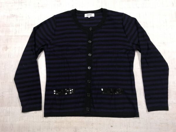 - ソニアリキエル Sonia Rykiel レトロ モード 古着 スパンコール ボーダー デザイン ウール100% ニット カーディガン レディース 44 紫/黒