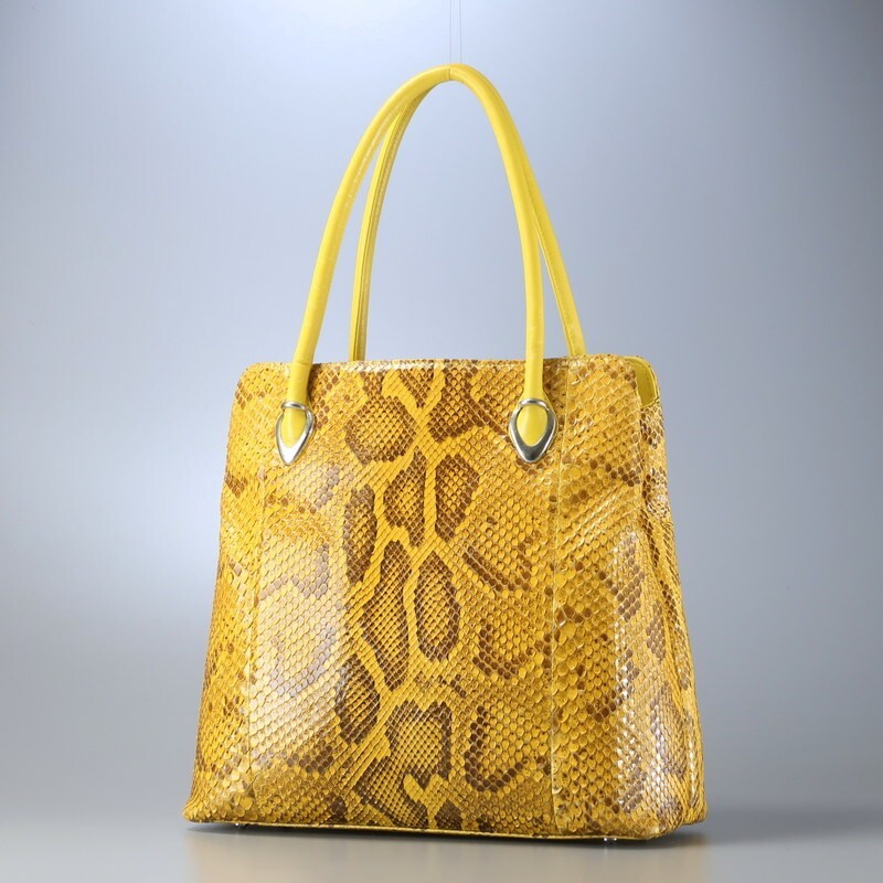 - MI2062*パイソンレザー トートバッグ ハンドバッグ 本ヘビ革 鞄 イエロー