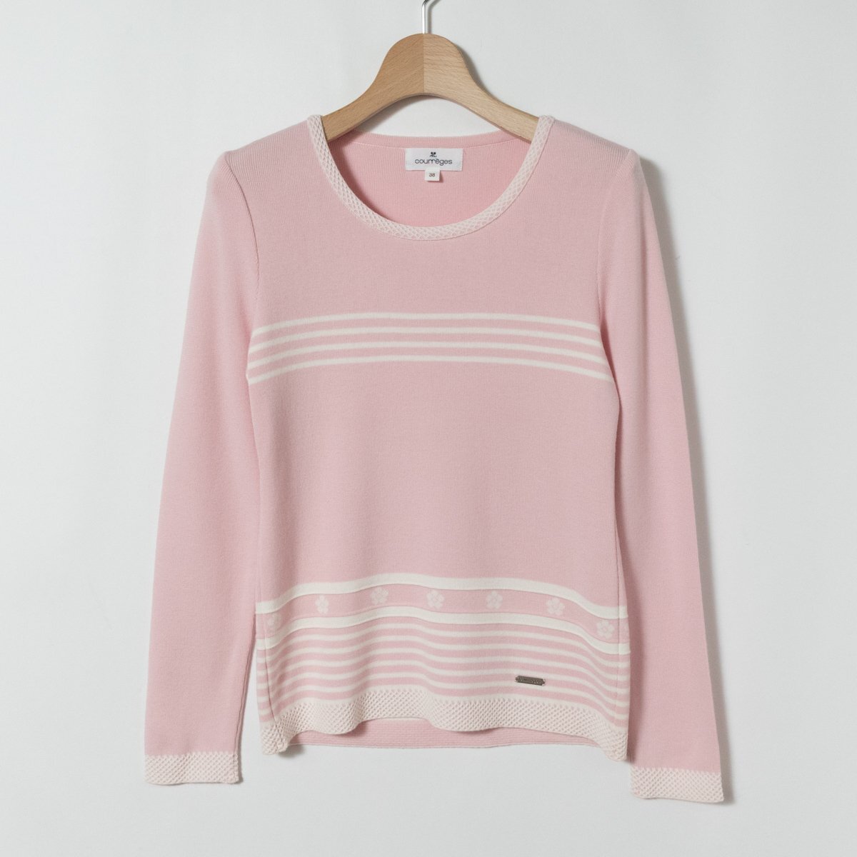 - Courreges クレージュ クルーネックニット カットソー セーター ライトピンク 38 Mサイズ レディース 女性 レーヨン ポリエステル 薄手 秋