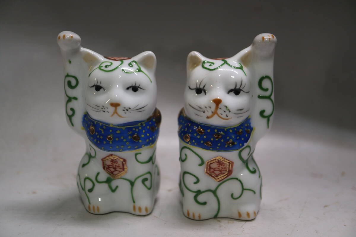 - 陶器 招き猫 置物 唐草模様 ゴールド レトロ 縁起物 その1