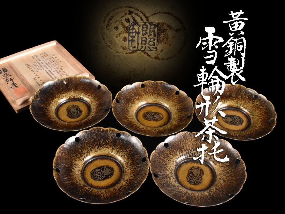> 【雲】某名家買取品 朗照軒造 黄銅 雪輪形茶托 5客 直径10.6cm 共箱 古美術品(茶道具煎茶道具)BY5658 CTkjhy