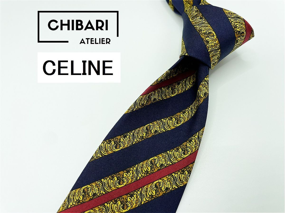 - 【超美品】CELINE セリーヌ レジメンタル柄 ネクタイ 3本以上 送料無料 メンズ ブラウンネイビー 1001012