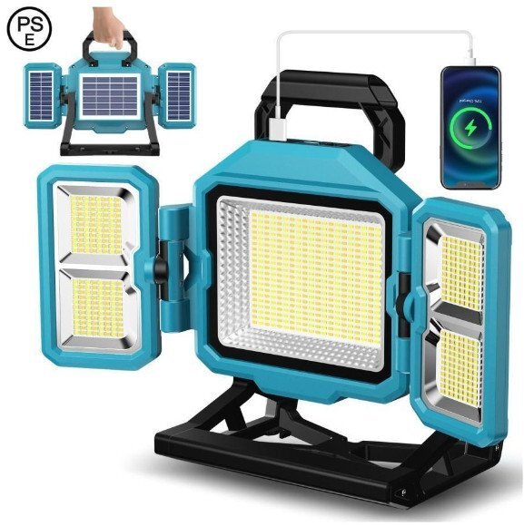- 【防災対策】投光器 LED ソーラー充電 USB充電 作業灯 3面発光 500W 55000LM 屋外照明 超高輝 16500mAH大容量 登山/緊急/屋外照明 (A180)