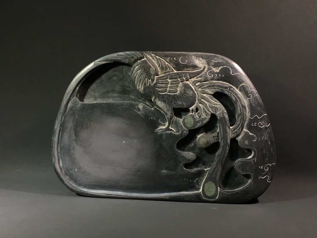 - 【永】清時代 在銘 端石彫 有鳳來儀硯 天然石眼 端渓硯 極細工 書道具 文房具 置物擺件 古美術品 時代物 古董品 収集 旧家蔵出 中国唐物