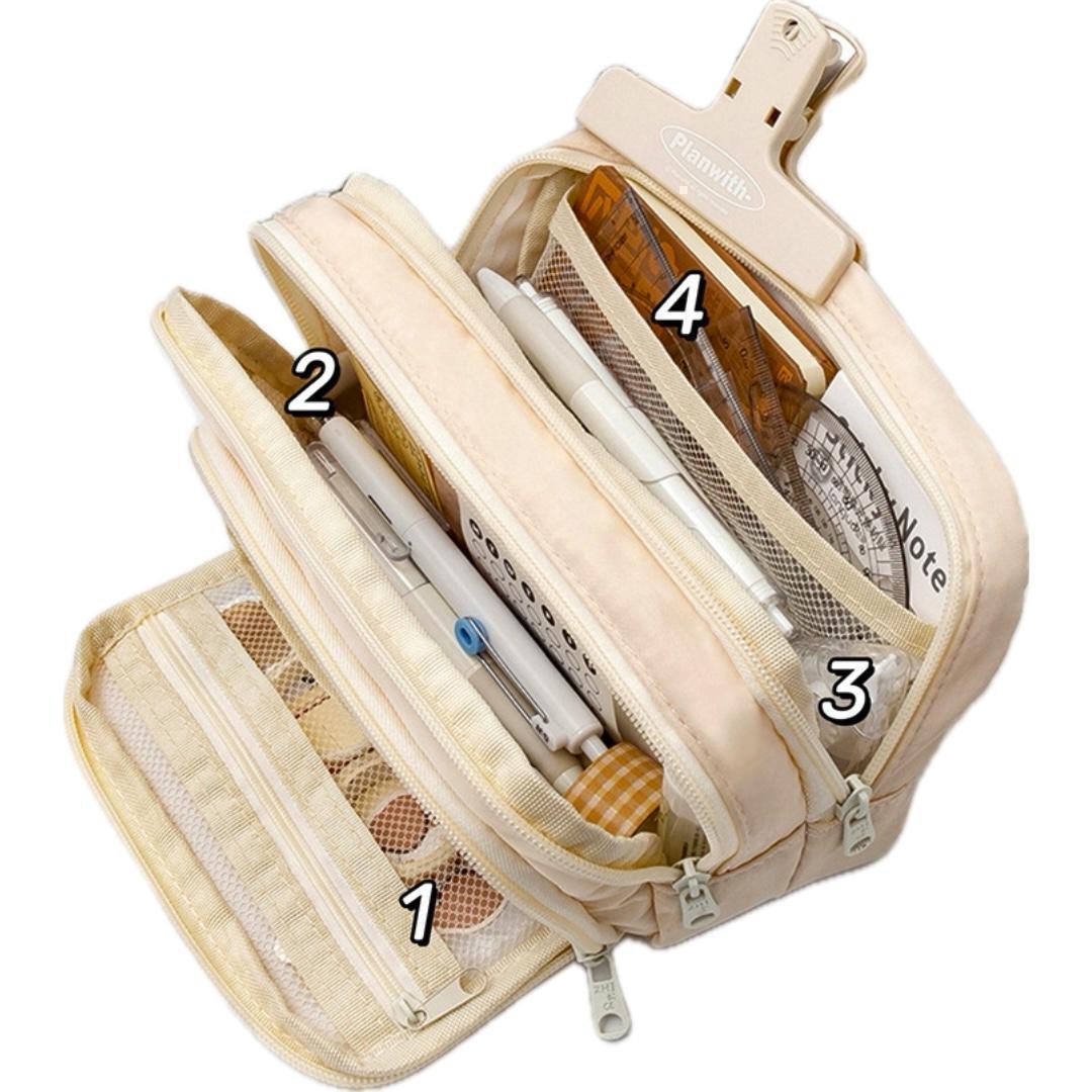 - 大容量 ペンケース 4層収納 約100本収納可 オフホワイト