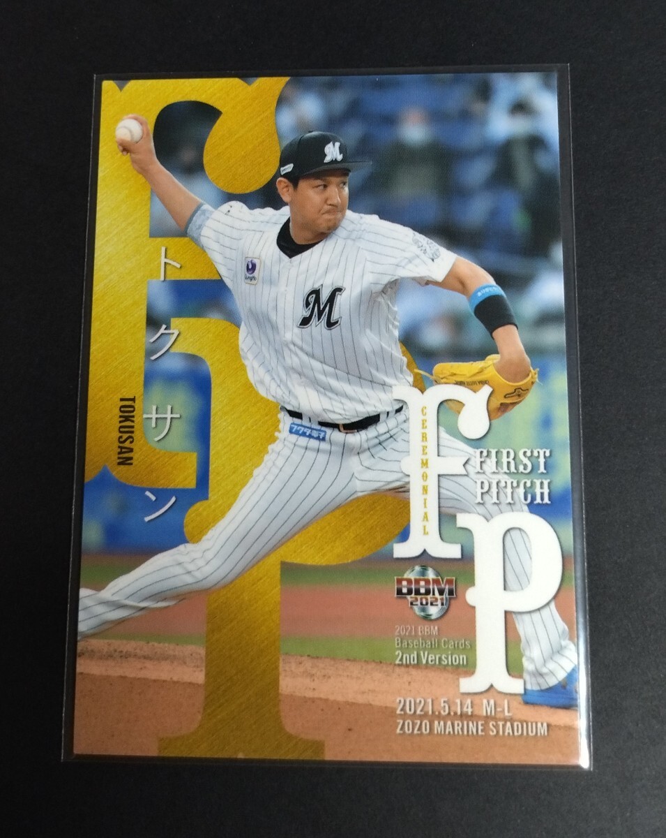 - 2021年BBM 2nd トクサン(YouTuber)First Pitch!始球式カード。ロッテvs西武戦ZOZOマリンスタジアム。No,FP14。