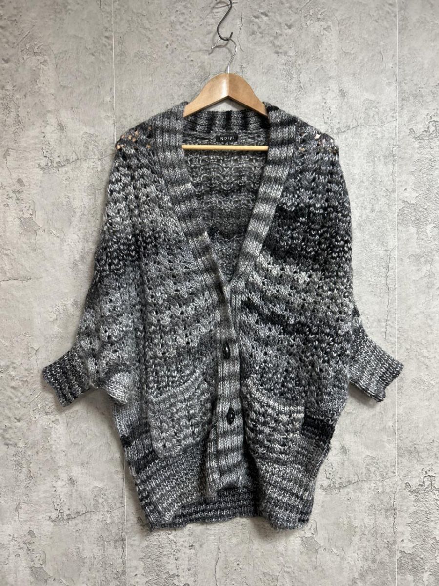 - INDIVI インディヴィ ケーブル編み カーディガン size42/グレー ◆■ レディース