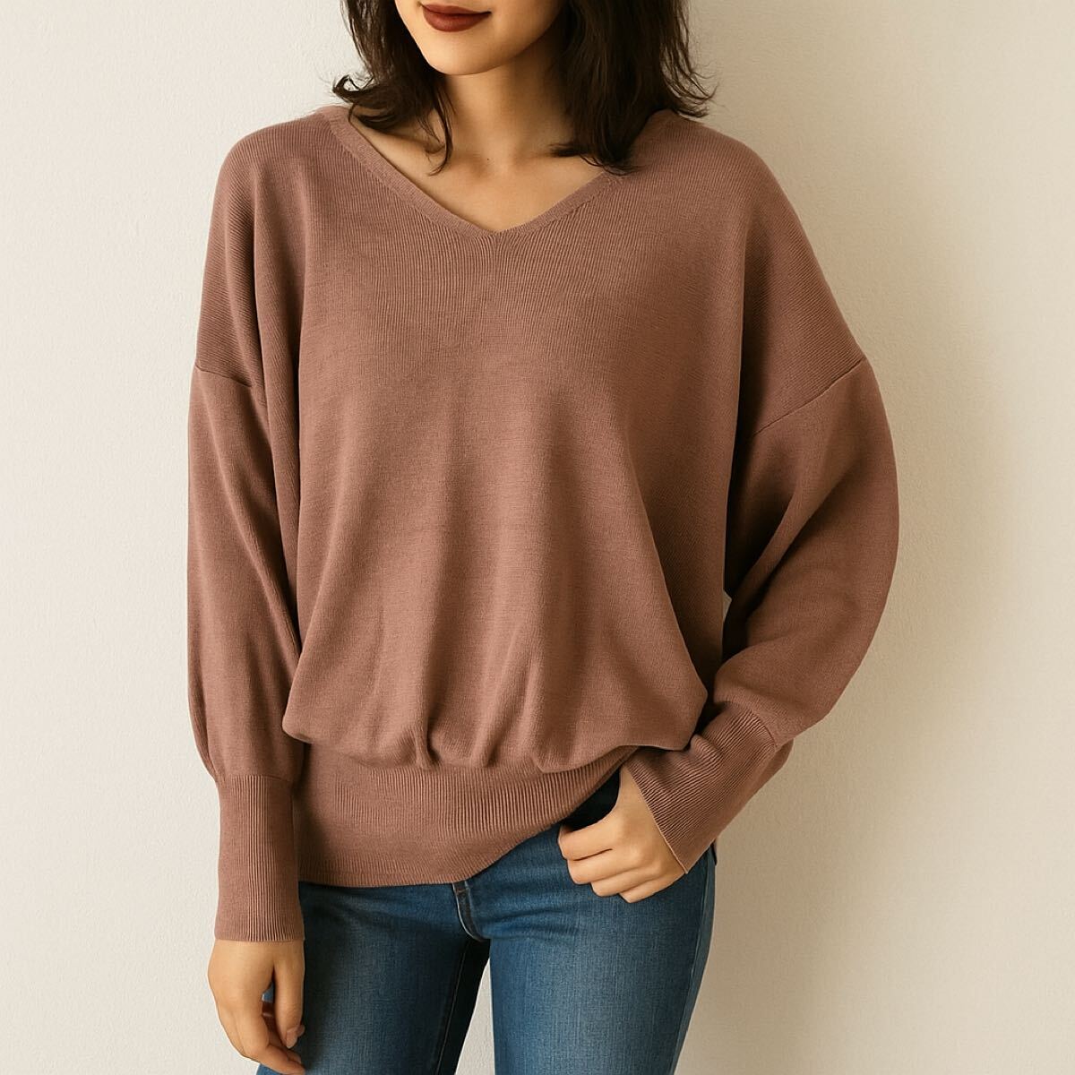 - スローブイエナ ウール混 Vネック 長袖 レディース ニット プルオーバー 無地