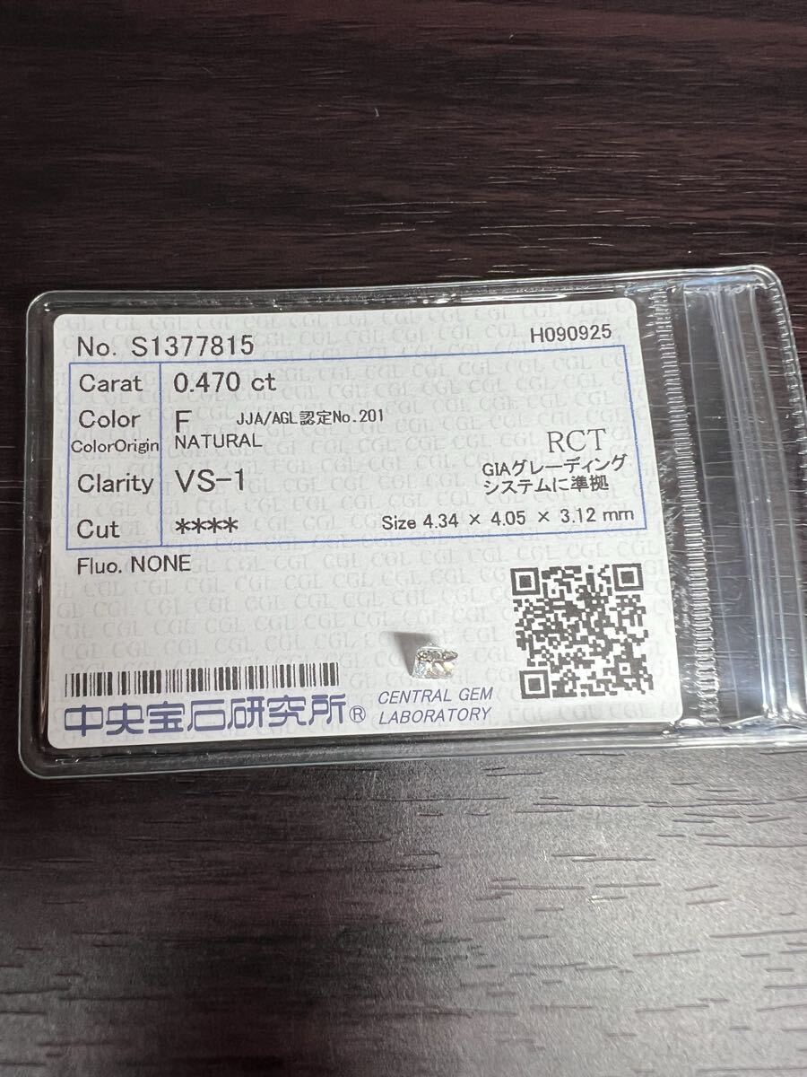 - 1円 ダイヤモンド ルース 0.47ct F VS-1 RCT EG2088