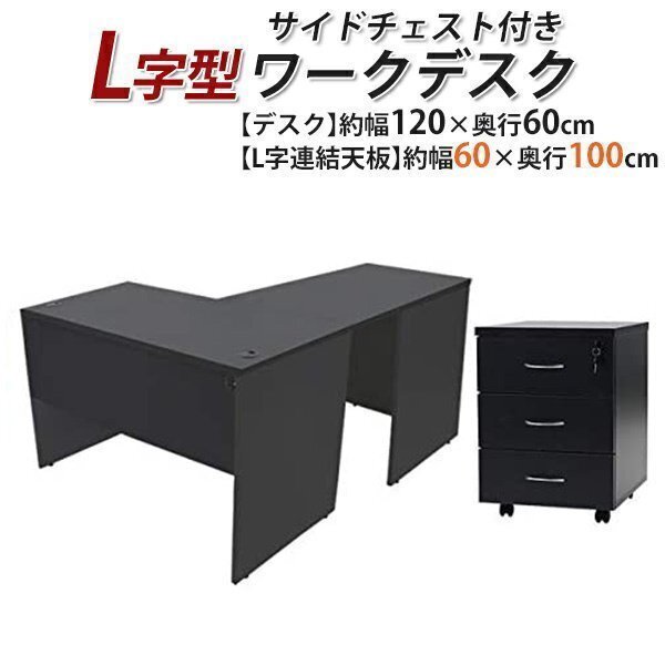 > 送料無料 ワークデスク L字型 3段 サイドチェスト 約W120×D160×H74 幕板 ゲーミングデスク L字デスク L型 左用 ブラック