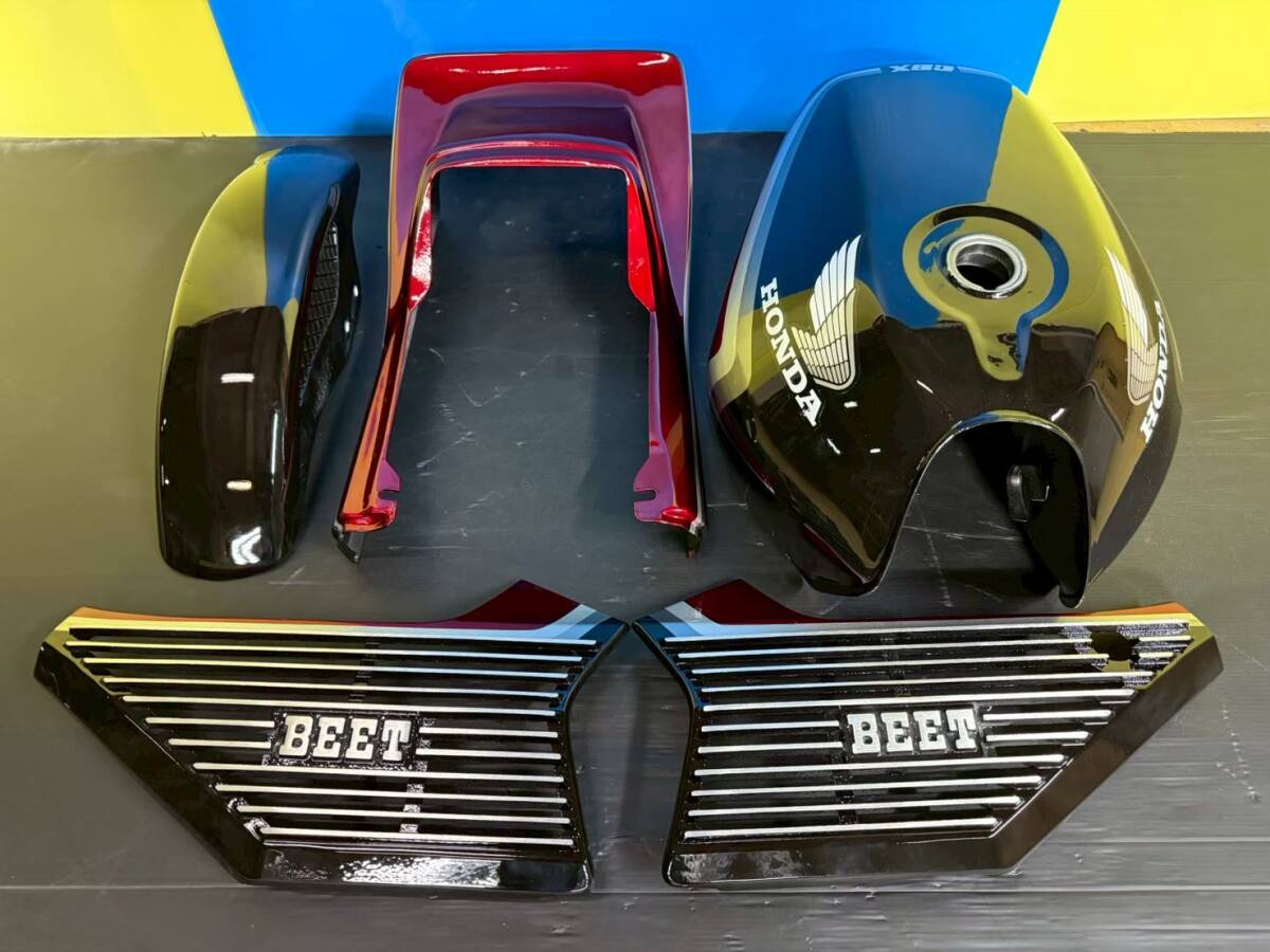 - 29 CBX400F 外装セット 黒赤2型 カラー/中古 美品 塗装後 未使用NC07タンクCBX550F外装 アルフィン テール ワルツBEET赤白 マーシャル