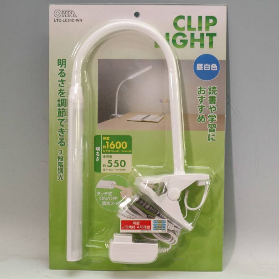 - 未使用品 オーム電機 LEDクリップライト LTC-LC24C-WN 3段階調光 昼白色 読書 学習 デスクランプ 卓上照明☆265y03