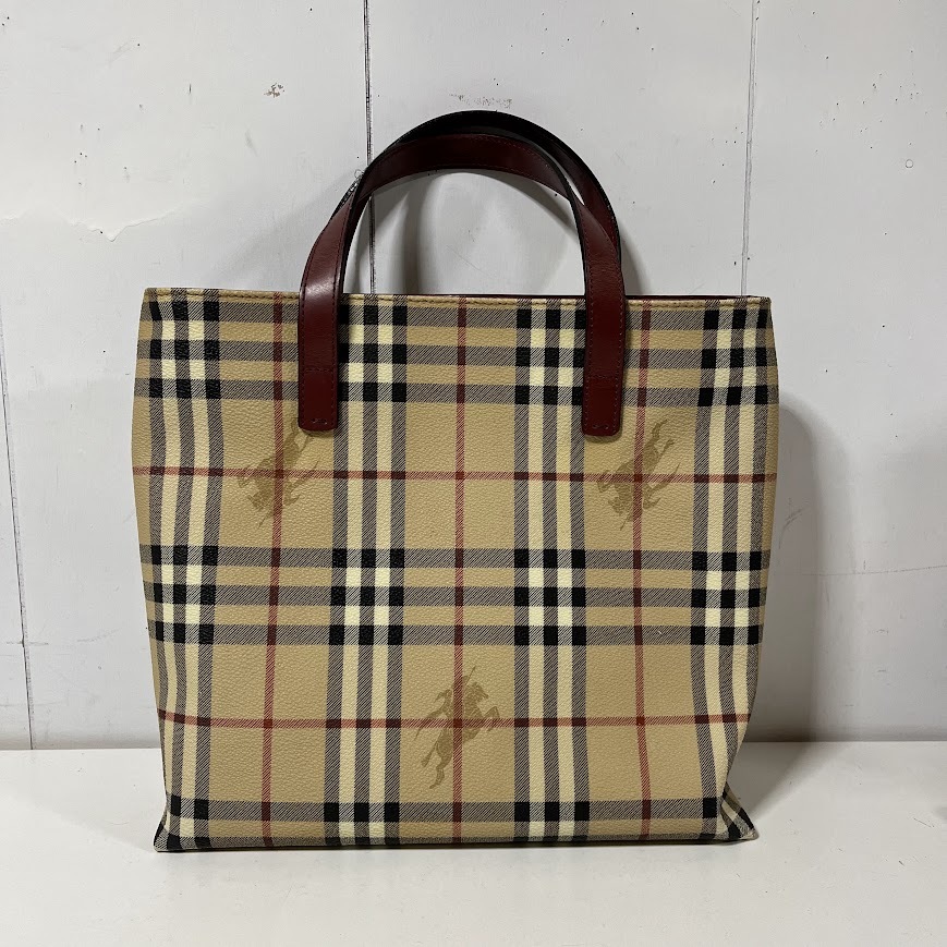 > ★BURBERRY★ バーバリー ノバチェック シャドーホース PVC×レザー ベージュ×ボルドー ハンドバッグ