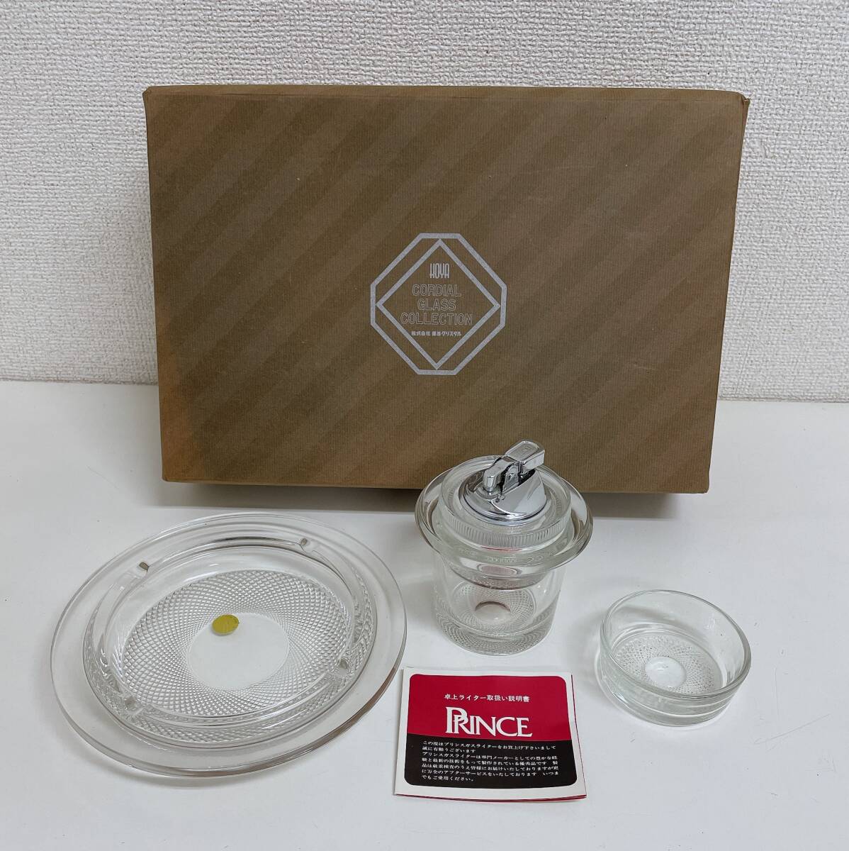> 【HOYAクリスタル PRINCE たばこセット】ガラス製/灰皿 ガスライター 卓上煙草/応接セット/昭和レトロ/A710-261