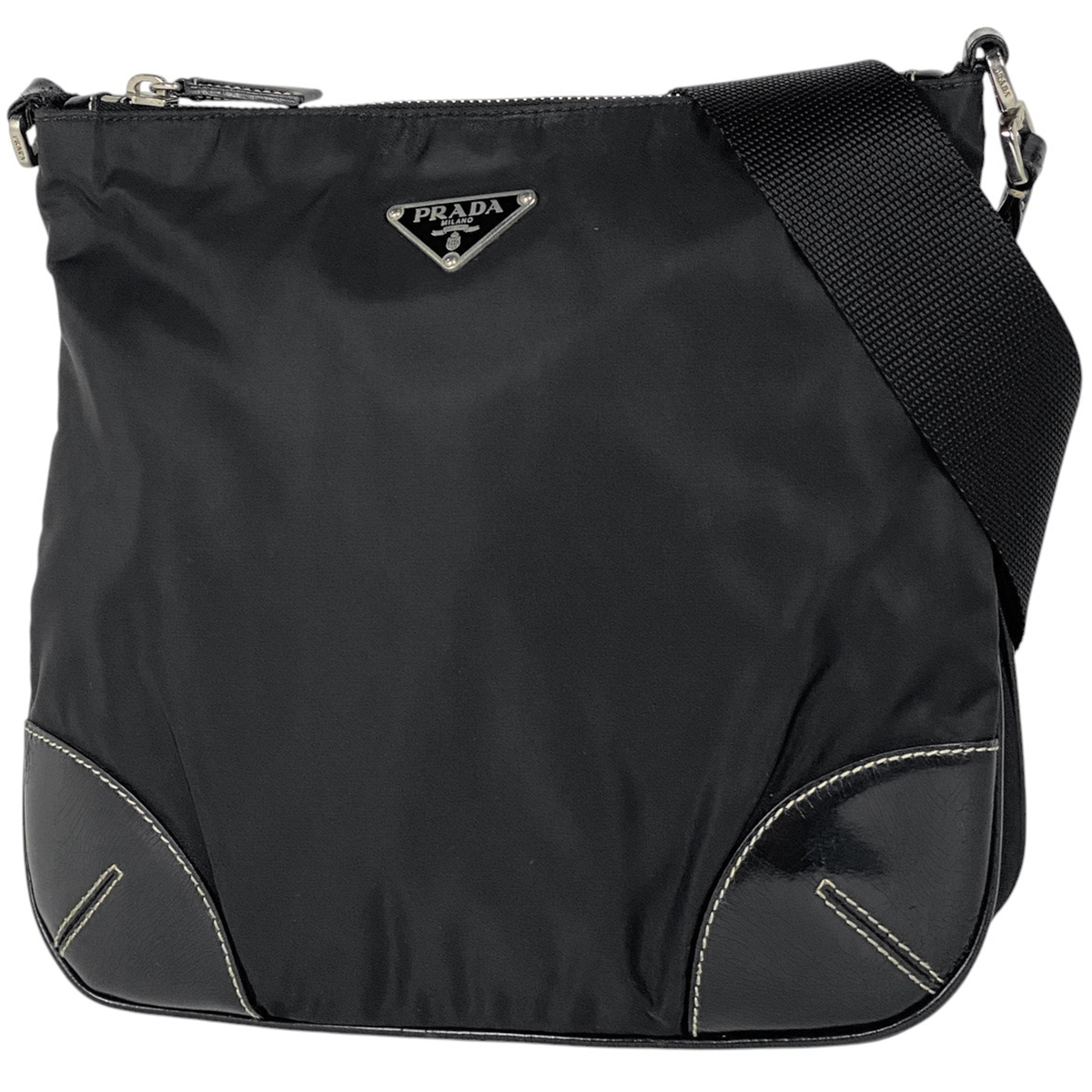 > プラダ PRADA ロゴプレート ショルダーバッグ ナイロン ネロ(ブラック) レディース 【中古】