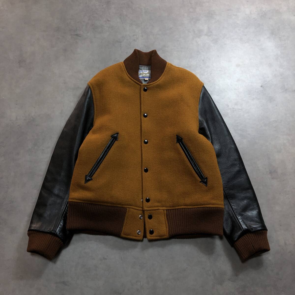 - GQ3924◇whitesville : 30oz. WOOL MELTON AWARD JACKET◇M◇キャメル 黒 ホワイツビル アワードジャケット スタジャン