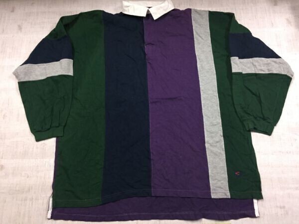 - THE ARROW COMPANY パキスタン製 アメカジ オールド レトロ 90s 古着 ストライプ切替 スウェット長袖ラガーシャツ メンズ 大きいサイズ2LT