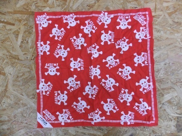- I LOVE JEFF GUAM グアム島 スカル柄 総柄 バンダナ 赤 スーベニア JTB