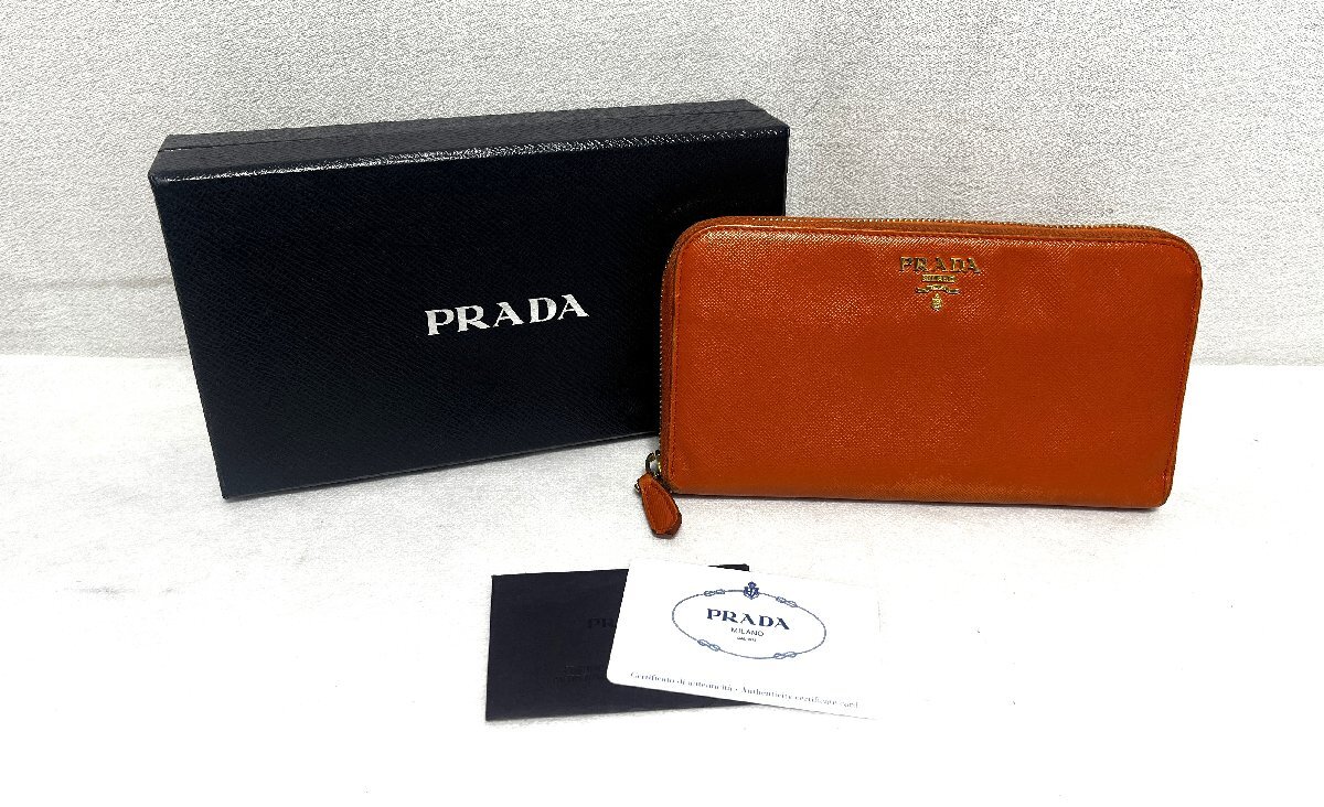 ▽PRADA プラダ 長財布 サフィアーノ オレンジ 財布 中古▽013680拍卖