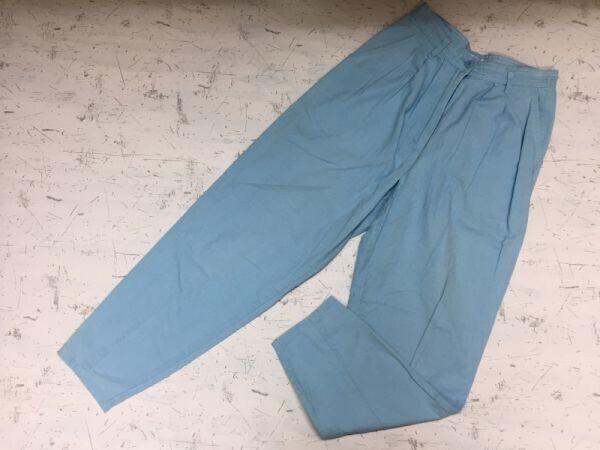 - ノーブランド レトロ テーパード 絣 カスリ タック入り パンツ ボトムス レディース コットン100% 36 水色