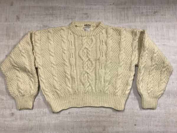 > MAPLE CREEKS 英国イングランド製 Sylvia Mary ケーブル編み フィッシャーマン 短丈 身幅広め ウール アラン ニット セーター レディース F
