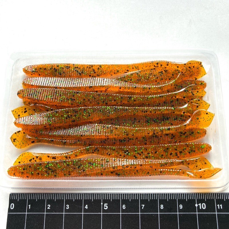 - 816202 ゲーリーヤマモト フラットテール ワーム 13本 GARY YAMAMOTO FLAT TAIL WORM #196 パンプキン/グリーン&ブラックフレーク