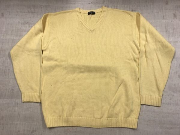 > オールド ユニクロ OLD UNIQLO オーセンティック トラッド 古着 Vネック コットン ニット セーター メンズ綿100% 大きいサイズ XL 黄色