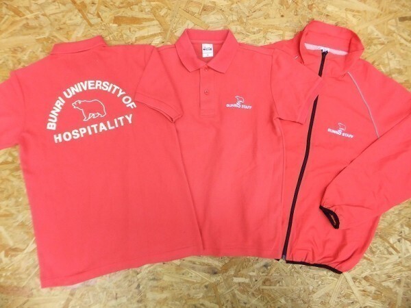 - 西武文理大学 ホスピタリティ スタッフ ユニフォーム ポロシャツ ウインドブレーカー カレッジもの 3点セット 赤 サイズS