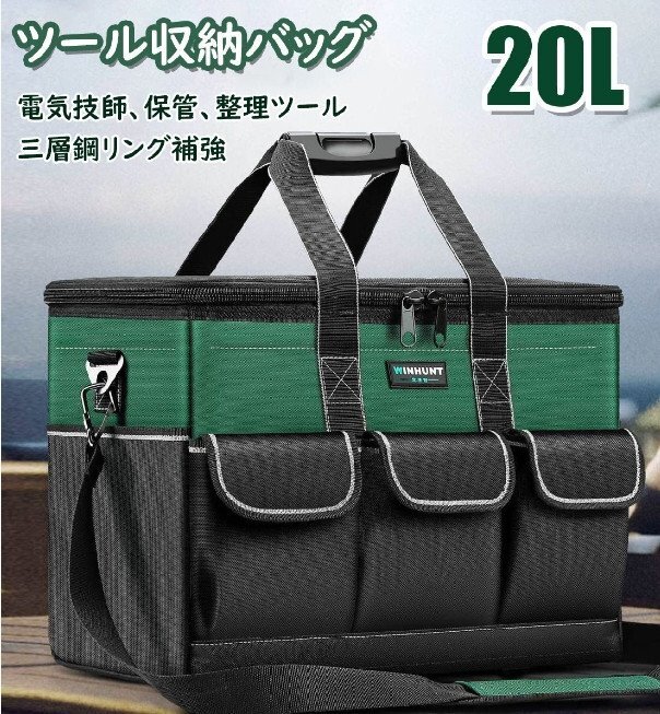 - ツール収納バッグ 工具バッグ 工具袋 ツールボックス 工具入れ 防水 耐荷重100kg 20L 大容量 手提げ 肩掛けベルト付き 2way 電工 作業用