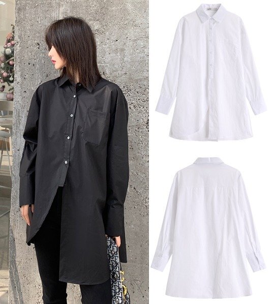 - トップス シャツ ブラウス 長袖 スリット入り アシンメトリー シンプル カジュアル レディース M ホワイト