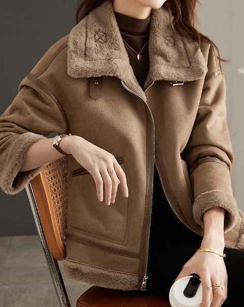 - ショート丈コート 長袖アウター ジャケット 羽織 きれいめ もこもこ 秋冬【大きいサイズあり】 L ブラウン