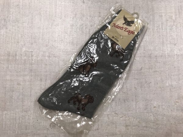 - 新品 Men's Eagle メンズイーグル レトロ トラッド オールド ジャガード 犬 イヌ ドッグ アニマル柄 靴下 メンズ 25~27cm グレー
