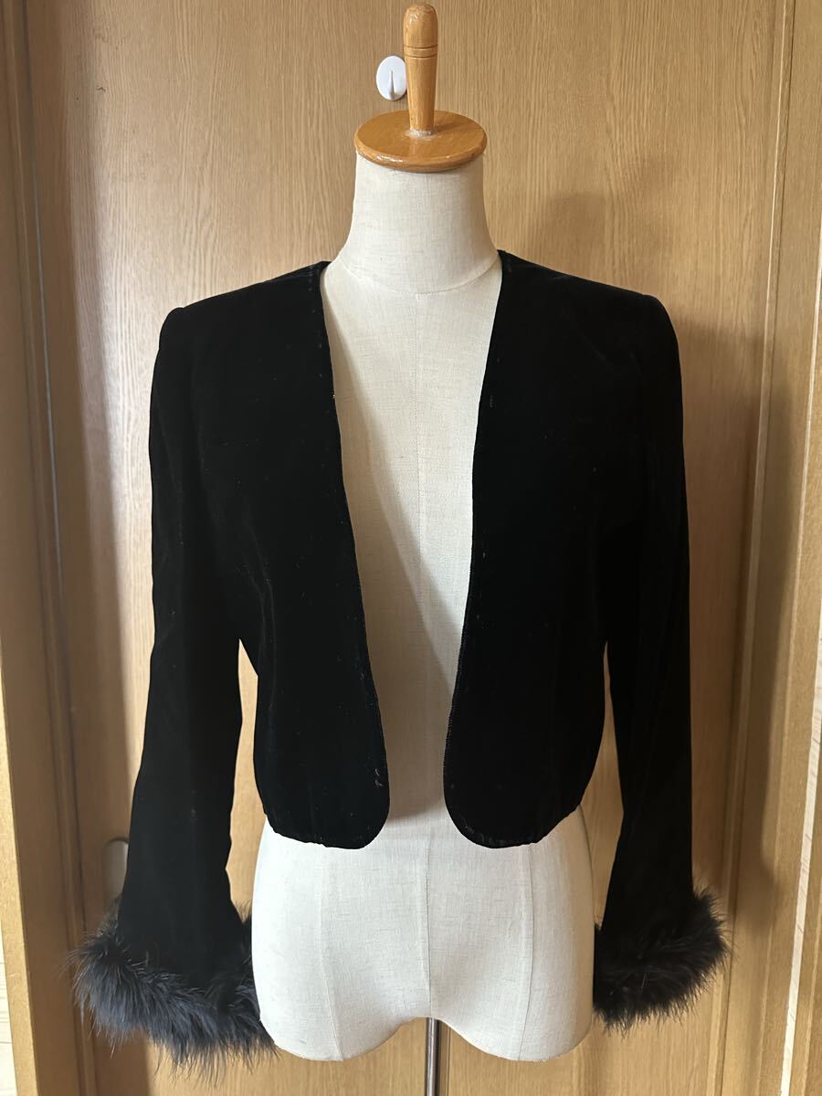 - ◇国産品 Saison de Rady リアルファー付き ベルベットベロア ボレロカーディガン◇結婚式パーティーお呼ばれフォーマル