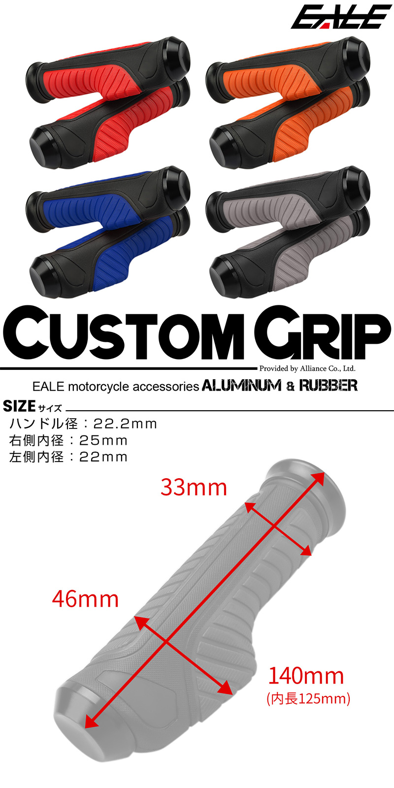> バイク グリップ スロットルアシスト付き ラバー アルミ カスタム ツーリング 疲労軽減 左右セット 22.2mm ハンドル用 レッド S-571-R
