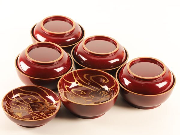画像参照 椀一客に小アタリ、椀三客に塗り直しあります*経年の傷み、擦れ、汚れ等はご承知下い。*