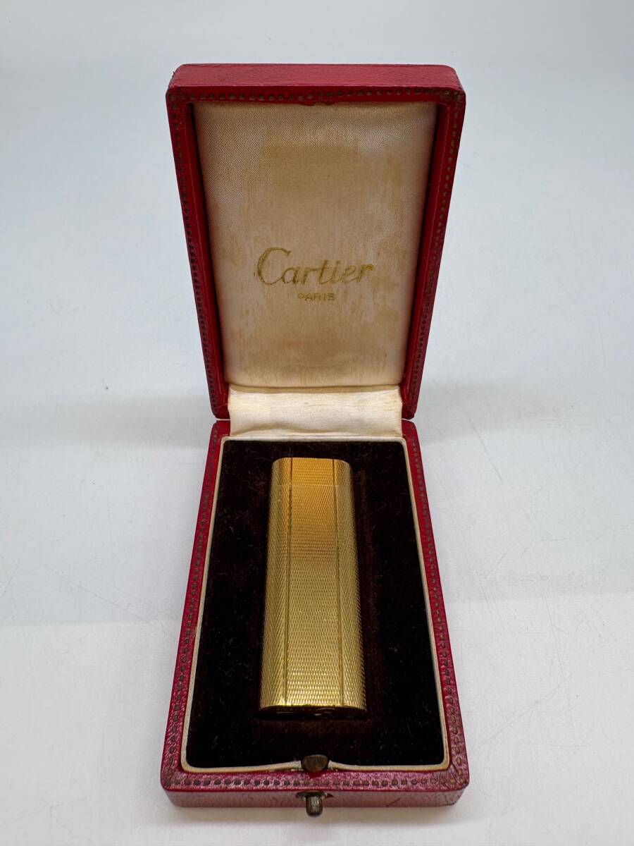 > S10763〇 【Cartier】カルティエ ライター ゴールドカラー火花確認OK ヴィンテージ 元ケース付き 20ミクロン 金メッキ 喫煙グッズ 喫煙具