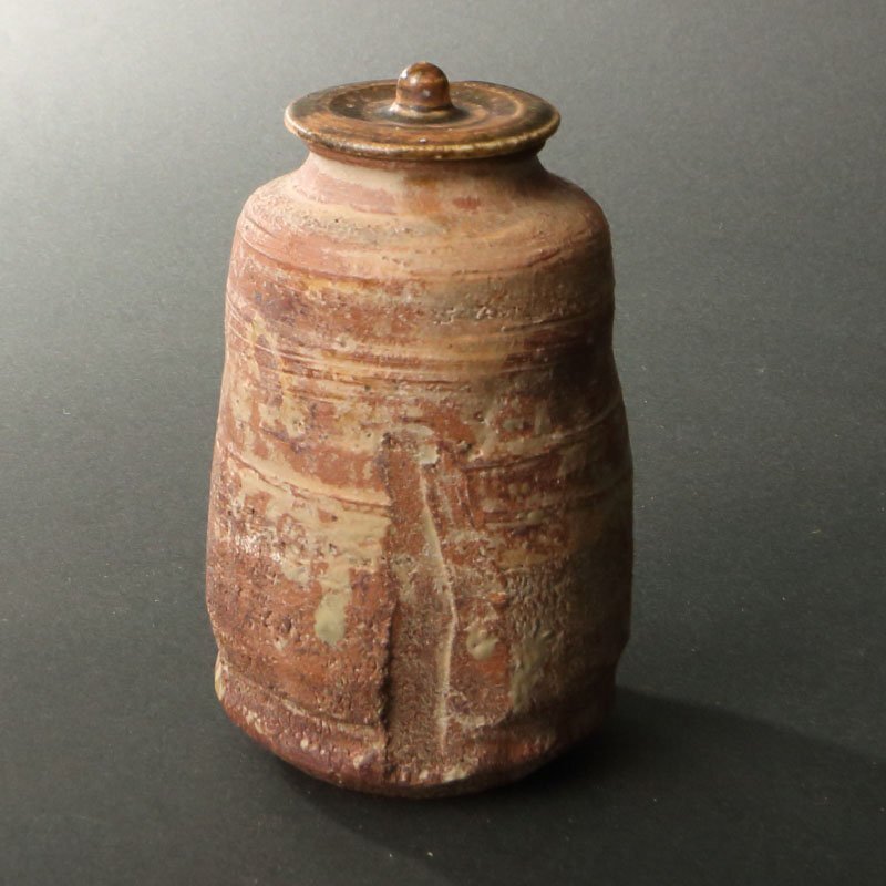 - 委託HK◇時代 織部肩衝茶入 大平窯出土品(茶道具 陶磁器 陶芸 美濃焼 織部焼 赤織部 茶器 濃茶 出土 発掘 共蓋 時代物 古物 骨董 茶の湯)